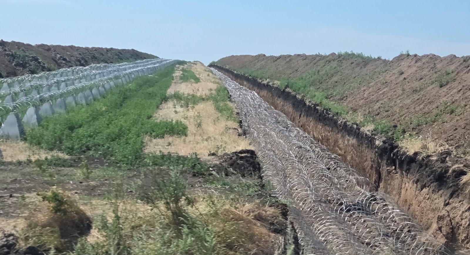 Cestou vidím v polích velké zákopy, s žiletkovými ploty, s betonovými jehlany. Příprava na případný posun fronty. Kéž k tomu nedojde.
