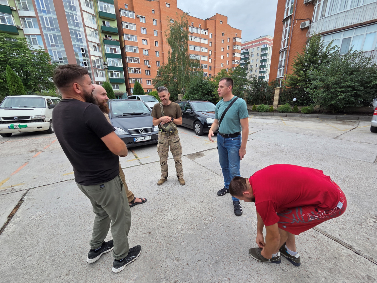 Jiný voják nevypadá jako voják. Je tichý a jakoby nesmělý. Opravuje pro armádu drony a přístroje. I on je vděčný za setkání s bratřími. Ukazuje nám na fotkách přidělený opuštěný byt, slaboproudou laboratoř. Základní vybavení asi dostanou anebo si přinesl, ale zbytek si musí sehnat. Například 3D tiskárnu dostal od nějakých nadšeneckých dobrovolníků. Klasika ukrajinské války. Základ dostaneš a kvalitnější zbytek výbavy si seženeš. Jo, lidé se tu sbírají i na vojenská auta…