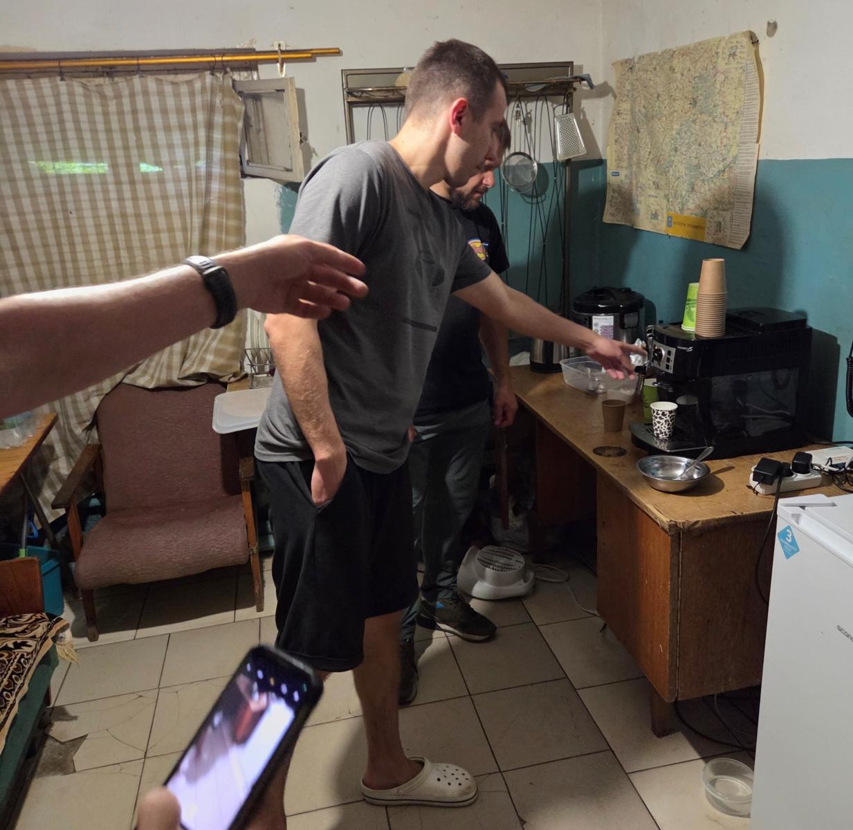 Na stabilizačním bodě se potkáváme s lékaři, sledujeme ošetřování čerstvě zraněných vojáků. O raněné zde pečují dva šikovní doktoři. Jdou s námi na kafe do vedlejší místnosti. Z presovače teče hnědý mok a začíná rozhovor. Na jeho konci nám děkují za návštěvu. Je to pro ně vytržení z krvavého světa. Za osobní setkání jsou vděčnější než za materiální pomoc.