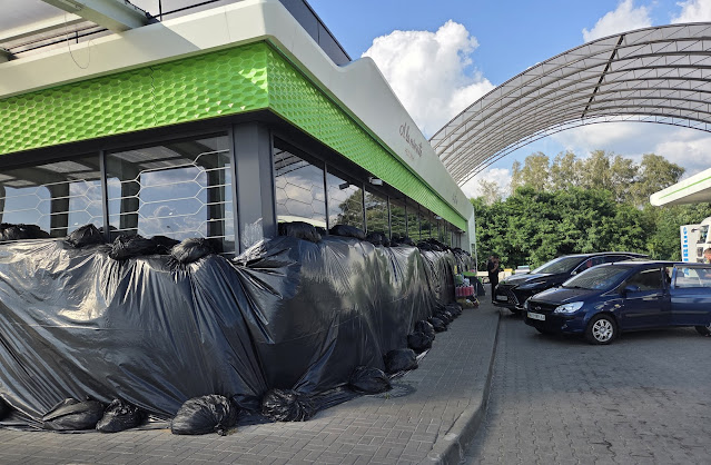 Jedeme dál směr Charkov a daleko za něj. Zde je válka viditelnější. Cestou vidíme rozbombardované rodinné domy, budovy, mosty. Rusové se neštítí ničeho. Viděli jsme zničené školy i pravoslavný chrám. Kolem silnice jsou četné bunkry. Ale zároveň obchody a benzinky jsou otevřené, trolejbusy jezdí, stánky s jídlem prosperují hlavně díky hladovým vojákům.