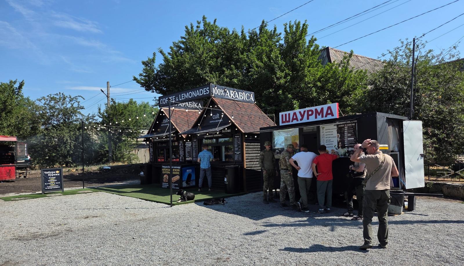 Ráno opět projíždíme zasíťovaným tunelem do nedaleké dědiny, která je jakousi křižovatkou cest vojáků. Je tu otevřený „magazín“, šašlikárna (šašlík je pokrm z grilovaného masa – pozn. red.), polní kavárna, hamburgerárna... I zde se setkáváme s vojáky, přáteli a bratry v Kristu. Povídáme si, modlíme se s nimi. Jednoho objímám a děkuji mu, že bojuje za nás.
